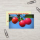 Ce carte de visite présente un verger de cerise à cueillette qui vend également du vin, de la confiture et des cadeaux. Trois cerises succulentes sont sur le devant avec des feuilles verts et un ciel bleu profond. Le dos a tout le texte important ainsi que plus de cerises. Tout le texte peut être customisé pour s'adapter à votre entreprise.