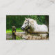 Créations de Susan Savad -- Ce beau cheval blanc dans son paddock semble très intéressé par le champ voisin. Peut-être que c'est l'herbe verte appétissante. Cette carte de visite serait parfaite pour les agriculteurs ou quiconque vend des produits agricoles. La papeterie et d'autres produits avec ce design sont également disponibles.