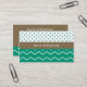 Écartez le mot au sujet de vos affaires nouvelles impressionnantes avec ces cartes de visite à la mode et à la mode avec des chevrons de vert vert et pois avec une rayure de brun de chameau par le milieu.