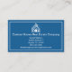 This professional light blue and white real estate business card is customized with your real estate company name under the modern artistic house drawing. These chic realty company cards feature a home above your realtor agent photo and contact details for client marketing.