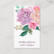Un design carte de visite unique et élégant présente un bouquet de fleurs d'aquarelle rose et violet aux feuilles verts doux, avec votre nom et titre ou nom d'entreprise affiché en bas .