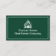 This professional hunter green and white real estate business card is customized with your real estate company name under the modern artistic house drawing. These chic realty company cards feature a home above your realtor agent photo and contact details for client marketing.