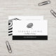 Un parapluie de plage rayé noir et blanc chic est associé à votre nom ou nom d'entreprise pour un logo instantané sur ce modèle de carte de visite design. Conçu pour capturer l'essence du luxe dans un design simpliste. Idéal pour les cafés, les locations de plages de vacances, les boutiques, les décorateurs, les salons de bronzage et plus encore. Art et design © 1201AM Design Studio | www.1201am.com