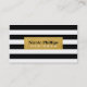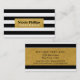 Carte de visite chic rayée noir et blanc avec or. Carte de visite belle, élégante et glamour pour toutes les professions.