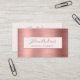 This chic custom professional business card fea faux rose gold brushed métallc textured background with your name in faux rose gold script with on a pale pink rectangle. Personalize your name, profession and details in rose gold script. Design par Susan Coffey.