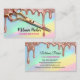 Éblouissez votre clientèle avec cette carte de visite ultra-tendance et glamour ! Le design présente un arrière - plan holographique/iridescent étonnant et doux qui change de couleur, en contraste avec une parties scintillant en or rose métallique et spectaculaire goutte à goutte sur le dessus. Une paire de ciseaux tranchants dorés au centre communique instantanément votre profession. Parfait pour les coiffeurs, les coiffeurs et les cosmétologistes qui veulent une identité de marque unique, moderne et mémorable. Customisez facilement la carte avec votre nom (par ex. "Melanie Parker") et toutes les coordonnées professionnelles !