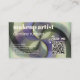 Beau carte de visite de maquillage artistique. Avec motif spiral turquoise vert foncé contemporain violet, violet, noir et menthe pâle, avec une police moderne rétro et minimaliste couleur ivoire blanc cassé. Cliquez sur "Personnaliser" pour trouver le modèle prêt à être customisé avec votre nom d'entreprise unique, votre profession et vos coordonnées, le texte et le code QR de votre choix. Ce design particulier, joli et unique, a été conçu pour ceux qui aiment les conceptions abstraites géométriques classiques sophistiquées.
