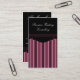 Elégant design Carte de visite Chic Stripes en noir et fuchsia avec une bordure rayée arrière - plan et pétoncle. Ce carte de visite double face élégant et professionnel ferait une grande première impression pour les clients potentiels. Customisez avec les détails de votre entreprise en remplissant les champs de texte de la page produit ou cliquez sur le bouton "Customiser" pour trouver des options de personnalisation supplémentaires.