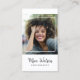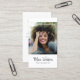 Cartes de visite de photographie modernes et professionnelles comportant votre photo dans un cadre blanc simple avec une typographie de script minimaliste tendance. Ajoutez vos coordonnées au verso. Ce design élégant comprend trois icônes de médias sociaux et un champ pour votre nom d'utilisateur.