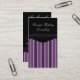 Elégant design Carte de visite Chic Stripes en noir et violet avec une bordure rayée arrière - plan et pétoncle. Ce carte de visite double face élégant et professionnel ferait une grande première impression pour les clients potentiels. Customisez avec les détails de votre entreprise en remplissant les champs de texte de la page produit ou cliquez sur le bouton "Customiser" pour trouver des options de personnalisation supplémentaires.