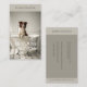 Dog in a Bath Pet Grooming Services Grey Carte de visite a une photo remarquable d'un chien blanc et marron à la frontière, posé à l'intérieur d'une baignoire dans une salle de bain à l'intérieur élégant. Les couleurs sont de tons neutres clairs avec un accent design de la typographie principale pour compléter l'atmosphère luxueuse du chien dans une salle de bain élégante.