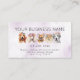 Un charmant carte de visite avec de jolis chiens avec des couronnes de fleurs sur la tête. Votre nom, votre titre et votre nom commercial/commercial sur un côté et les coordonnées au verso. Ces charmants et jolis chiens avec des fleurs "dans leurs cheveux" montrent à votre client comment leur propre ami furry sera choyé et traité comme des pourcentages dans votre entreprise de toilettage d'animaux de compagnie. Illustration avec des fleurs colorées dans le style couleur de l'eau. Doré, caniche blanc, bulldog français, pomeranien et dalmitian.