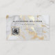 Carte de visite élégante moderne ciseaux à code QR en marbre blanc or