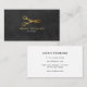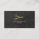 Une carte de visite chic avec des ciseaux dorés élégants sur fond de tableau noir et une typographie moderne stylée. Conçue par Thisisnotme©