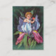 Un carte de visite vintage avec du charme comportant un bel ange de fleur dans un iris, peint par l'illustrateur américain/créateur publicitaire Ellen Hattie Clapsaddle.