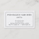 Ce design carte de visite classique comporte un nom, une profession et des coordonnées personnalisables. Il dispose également d'une frontière à trois lignes. Ces cartes de visite peuvent être utilisés par un professionnel tel qu'un graphiste, un ingénieur ou un planificateur financier.