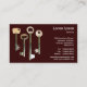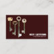 Modèle de carte de visite avec un arrangement de clés. Détails de l'entreprise sur le devant, avec nom et coordonnées au verso avec une répétition du motif des touches. Peut être customisé de plusieurs façons convenant à de nombreux types d'entreprises, en particulier les propriétaires, la gestion immobilière, les agences de location. serrer les forgerons, la sécurité, etc.