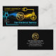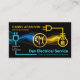 Couverture dispose d'un circuit électrique créatif qui tire de l'énergie de votre prestigieux nom et titre d'emploi en haut de la carte. Un éclair électrique zappe un logo or "réparation d'outils de broche" que vous pouvez utiliser. Juste en dessous du logo se trouve le nom commercial et ses coordonnées. Sur le mur gauche, dans la prise bleue est un slogan pour faire connaître votre entreprise ; Vous pouvez changer la légende "appelez-moi pour une consultation gratuite" pour répondre à vos propres besoins de service. Au-dessus, dans une couverture noire, le logo doré est placé en haut, suivi de votre nom prestigieux, de vos coordonnées et d'une option de slogan pour faire connaître vos services. Une grande carte créative pour les thèmes électriques.