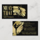 Un design d'entreprise Muay Thai spectaculaire en noir et or, présentant une illustration puissante d'un combattant contre les textures de brosses audacieuses. Le premier met en valeur le titre de Muay Thai avec une forte typographie, tandis que le second comprend une silhouette de frappe à côté des détails de l'entraîneur, des informations de contact et des offres de classe. Un choix exceptionnel pour les entraîneurs Muay Thai, les entraîneurs personnels et les professionnels du sport de combat qui veulent un look moderne et à fort impact.