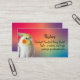 Votre entreprise d'oiseaux a besoin de cartes de visite à thème d'oiseaux! Cette conception de cocktail aux couleurs vives arc-en-ciel fait une excellente présentation pour votre animal de compagnie, éleveur de perroquets, fabrication de jouets, embarquement d'aviaires, abri secouru ou petit magasin de nourriture et de fournitures pour animaux.