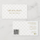 Cet élégant carte de visite à carreaux dispose d'un arrière - plan clair à damiers avec du texte doré. Ajoutez votre nom d'entreprise et votre slogan à l'avant de l'arrière - plan élégant avec une police serif élégante. Votre adresse professionnelle et vos coordonnées, y compris les médias sociaux et les icônes, et le code QR au verso. Parfait pour les marques personnelles, les boutiques et plus.