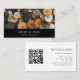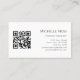 QR code couture carte de visite de mode, avec un simple bouton photo design sur un arrière - plan noir. Avec du texte personnalisable, vous pouvez ajouter vos propres informations. Vous ajoutez votre site Web au champ de code QR pour que vos clients puissent l'analyser. Une façon unique de promouvoir votre entreprise de couturière ou de designer professionnel.