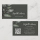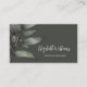 Carte de visite professionnel avec un croquis vert gris d'une branche d'eucalyptus. L'arrière - plan vert gris foncé clair donne une touche minimaliste au design. Un nom personnalisé dans un élégant script manuscrit. Avec un modèle pour votre code QR et vos socials à l'arrière. Parfait pour les gestionnaires de propriétés de location de vacances, les architectes d'intérieur, la mise en scène, les horticulteurs, les agents de voyage, les fleuristes, les paysagistes, les boutiques de mode, les boutiques de plage, les agents de voyage ou toute entreprise basée sur l'île.
