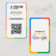 Cette carte de visite accrocheuse est conçue pour encourager les clients à vous laisser un avis sur Google. Elle présente un design lumineux et coloré avec le logo Google et une note de cinq étoiles, soulignant l'importance des avis positifs.