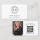 Carte de visite notaire professionnel moderne avec photo et logo contre un arrière - plan blanc. L'envers contient les informations de contact et le code QR. Vous pouvez customiser la taille du texte, la police, pour adapter votre style personnel. Remplacez cet exemple de photo de porte-place par votre propre carte de visite d'orientation portrait.