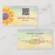 Ce carte de visite-coach de vie botanique fleuri est décoré d'un tournesol jaune sur un arrière - plan coloré d'aquarelle. Facilement personnalisable avec vos détails et QR Code. Utilisez l'outil de conception pour modifier la taille, le style ou la couleur du texte. En créant notre oeuvre, vous ne trouverez pas cette image exacte d'autres créateurs. Aquarelle originale © Michele Davies.