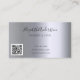 Un carte de visite élégant et glamour sur un arrière - plan faux d'aspect argenté décoré de faux goutte de parties scintillant argentée à l'avant. Élégant script de style en lettres à main noire. Personnalisez et ajoutez votre nom, votre titre et vos coordonnées. Ajoutez votre propre code QR à votre site web.