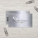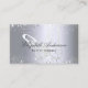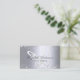 Un carte de visite élégant et glamour sur un arrière - plan faux argenté décoré de faux parties scintillant et d'un papillon. Élégant script de style en lettres à main noire. Personnalisez et ajoutez votre nom, titre, numéro de téléphone, adresse de messagerie et de site Web. Ajoutez votre propre code qr à votre site web ou aux médias sociaux.