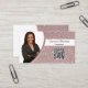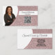 Une fausse parties scintillant rose démarre l'arrière - plan de ce design carte de visite avec un espace réservé photo à gauche avec le nom du modèle à droite et QR Code à droite. Le dos comprend une conception et des couleurs coordonnées avec des champs de texte pour le nom commercial et les détails. Remplacez l'espace réservé par votre photo au format vertical et votre code QR à l'avant. Remplissez les champs du modèle ou cliquez sur customiser pour sélectionner le style, la taille et la couleur de police que vous souhaitez. Utilisez votre code QR pour envoyer des clients sur votre site Web, des avis, des photos ou d'autres pages spéciales. La photo de l'espace réservé est gracieusement fournie par pixabay.com.