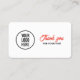 Cette carte de remerciement simple et élégante est le moyen idéal pour exprimer votre gratitude à vos clients. Le design présente un fond blanc épuré avec un espace pour votre logo et un message "Merci" manuscrit dans une couleur rouge gras.