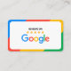 Cette carte de visite accrocheuse est conçue pour encourager les clients à vous laisser un avis sur Google. Elle présente un design lumineux et coloré avec un logo Google et une note de cinq étoiles, soulignant l'importance des avis positifs.