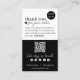 Simple noir et blanc minimaliste et moderne Script QR Code Carte de remerciements pour entreprises Ajoutez ce carte de remerciements élégant à vos commandes client pour une touche chaleureuse. Montrez votre appréciation et égayez votre emballage avec un design classique et chic et des lettres modernes. Personnalisez-le en incluant un code de coupon spécial pour encourager les achats répétés. Ajoutez votre logo et vos profils de réseaux sociaux pour aider les clients à rester connectés. Inclure votre lien de site Web dans le code QR pour un accès facile. Contribuez à établir de solides relations avec les clients et à rendre votre marque mémorable.