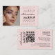 Carte de visite de maquillage de code QR d'icônes sociales de script noir rose Blush.