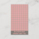Conception carte de visite avec un motif rose à damiers et une mise en page propre et minimale, avec un code QR pour l'accès direct à un site Web ou un portfolio. Convient aux entreprises de vêtements faits main, aux marques de caractère ou aux professionnels de la création.
