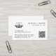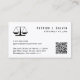 Carte de visite professionnel minimaliste et élégant pour avocats et professionnels du droit avec une illustration des échelles de justice et de votre nom, titre (avocat, conseiller, associé, etc.) et des coordonnées (tels que email, numéros de téléphone, nom de l'entreprise et adresse postale) en lettres simples et modernes. Entrez une adresse URL pour créer un code QR numérisable lié à votre site Web, profils de réseaux sociaux ou toute autre plate-forme qui présente votre travail, ce qui facilite l'exploration de votre expertise par d'autres personnes. Au verso, customisez du texte supplémentaire ou laissez vide.