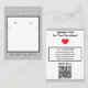 Bijou fait main par Nom en typographie en haut en blanc. Fond de couleur argent. 100% Argent véritable écrit en noir en écriture cursive (conserver ou insérer un slogan court, ou supprimer pour laisser la zone vide). Deux petits cercles sur fond blanc et noir encadré. REMARQUE : Les cercles et les lignes de chaque côté ne sont pas pré-découpés, vous devrez utiliser un petit perforateur et des ciseaux ou un cutter pour faire des trous et des fentes propres, pour ensuite placer vos clous d'oreilles et votre collier. Le verso comporte un petit cœur rouge. Insérez le numéro de téléphone, l'adresse e-mail, le site Web, la poignée de médias sociaux, selon les besoins. Insérez le code QR de votre entreprise pour que les clients puissent magasiner 24h/24 et 7j/7, ou supprimez-le selon les besoins. Création originale par