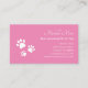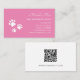 Code QR Pet Sitter carte de visite rose, avec un design empreinte de patte et des lettres blanches et noires. Avec du texte personnalisable, vous pouvez ajouter vos propres informations. Le dos a un code QR où vous ajoutez votre site Web. Idéal pour ajouter une touche tendance à votre entreprise de services pour animaux de compagnie.