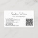 Ce carte de visite botanique est décoré de fleurs sauvages d'aquarelle délicats et de feuillage dans des tons pastel et une typographie stylisée. Facilement personnalisable avec vos détails et QR Code. Utilisez l'outil de conception pour modifier la taille, le style ou la couleur du texte. Aquarelle originale © Michele Davies.