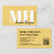 Mustard Jaune Professionnel Simple Moderne Carte de visite Monogramme. Vous pouvez le changer à n'importe quelle entreprise que vous voulez : maquilleur, spécialiste du fouet, coiffeur, ou même quelque chose comme le marketing, le conseil et plus encore! Doté d'un arrière - plan jaune moutarde sur les deux côtés avec des polices noires et blanches en typographie classique et audacieuse associée à une police de script élégante pour les détails. L’arrière comprend de l’espace pour un code QR afin que les clients puissent se connecter rapidement à votre site Web, avec des icônes de médias sociaux placées au-dessus, vous pouvez supprimer tout ce que vous ne voulez pas. Un look tendance et chic, toujours professionnel et élégant. Vous pouvez changer toutes les couleurs pour en faire la façon que vous voulez. Le nom latéral sur le devant devrait fonctionner avec la plupart des initiales, mais si ce n'est pas le cas, vous pouvez jouer avec l'espacement dans l'éditeur complet.