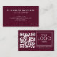 Notre burgundy QR Code Company Logo Professional Front et Back Carte de visite - une solution sophistiquée et innovante pour les entreprises modernes. Avec une délicate teinte bordeaux et votre code QR personnalisé bien affiché, cette carte allie élégance et fonctionnalité sans effort. Montrez le logo de votre entreprise des deux côtés, ce qui donne une impression durable sur les clients potentiels. Que vous soyez un professionnel chevronné ou que vous débutiez, ce carte de visite est parfait pour laisser une marque mémorable dans une ère numérique. Améliorez votre marque et votre jeu de réseautage avec ce carte de visite sophistiqué et doté d'une grande technologie.