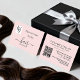 Blush rose élégant script branding extension de cheveux avec des tons doux et féminins et une calligraphie moderne. Créé pour les professionnels de l'extension de cheveux et les entreprises de beauté à la recherche d'une identité de marque chic, soignée et mémorable. Inclut un espace pour le logo et le code QR, permettant aux clients de scanner et de réserver un rendez-vous rapidement.
