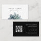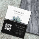 Moderne Botanique verdure QR code carte de visite, avec un design succulent branché sur un arrière - plan blanc et noir. Avec des lettres personnalisables en noir et blanc, vous pouvez ajouter vos propres informations. Vous ajoutez votre site Web au champ de code QR pour que vos clients puissent l'analyser. Idéal pour promouvoir votre entreprise de design avec un style élégant.