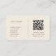 Code QR moderne et chic et carte de contact des médias sociaux. Cette carte est composée d'une combinaison de polices contemporaines, d'un code QR, d'un site Web, de coordonnées et d'un lien vers les réseaux sociaux. Les arrière - plans tri-couleurs comprennent le lilas, la crème pâle et le vert pastel. Utilisez l'outil de conception pour supprimer les éléments du modèle que vous ne voulez pas. Par exemple, une image ou un logo peut être ajouté pour remplacer l'adresse du site Web sur le côté gauche de la carte. La ligne sous votre nom peut également être supprimée à l'aide de l'outil de conception en choisissant l'option "supprimer" sous MODIFIER en haut à gauche de l'écran.