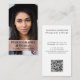 Carte de visite moderne avec votre photo surchargée de votre nom et de votre profession en typographie élégante. À l'arrière, ajoutez vos coordonnées et entrez une adresse Web pour créer un code QR numérisable connecté à votre site Web, à votre portefeuille, à votre profil de médias sociaux ou à toute autre plate-forme en ligne qui présente votre travail, ce qui permet aux clients et aux clients d'explorer facilement votre expertise.