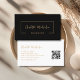 Carte de visite QR Code minimaliste, écriture manuscrite, noire et beige.