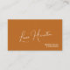 Élégant tendance calligraphie manuscrite script signature féminine nom rouille orange brûlé et blanc modèle de carte de visite d'influenceuse avec code QR à scanner vers site web, catalogue ou portfolio. Convient aux professionnels de la beauté : artistes maquilleurs, coiffeurs, techniciens en onglerie, spécialistes des cils et sourcils, influenceurs sur les réseaux sociaux, stylistes personnels, distributeurs de Lipsense ou blogueurs de style de vie.